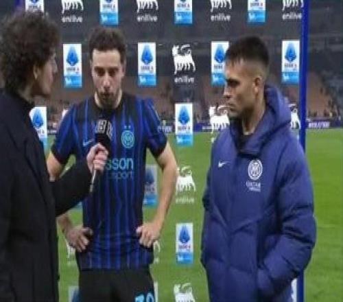 實(shí)拍:角球破門后,勞塔羅將小圖拉姆推向場邊單獨(dú)接受掌聲 -